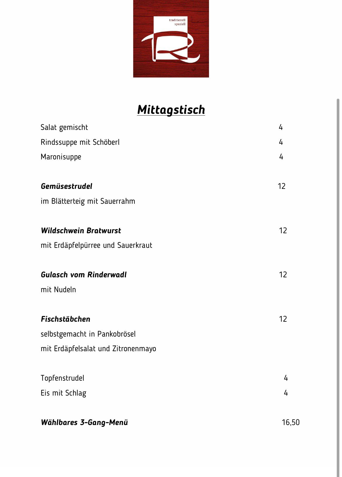 Unseren Mittagstisch finden Sie hier oder immer aktuell auf unserer Facebook-Seite.